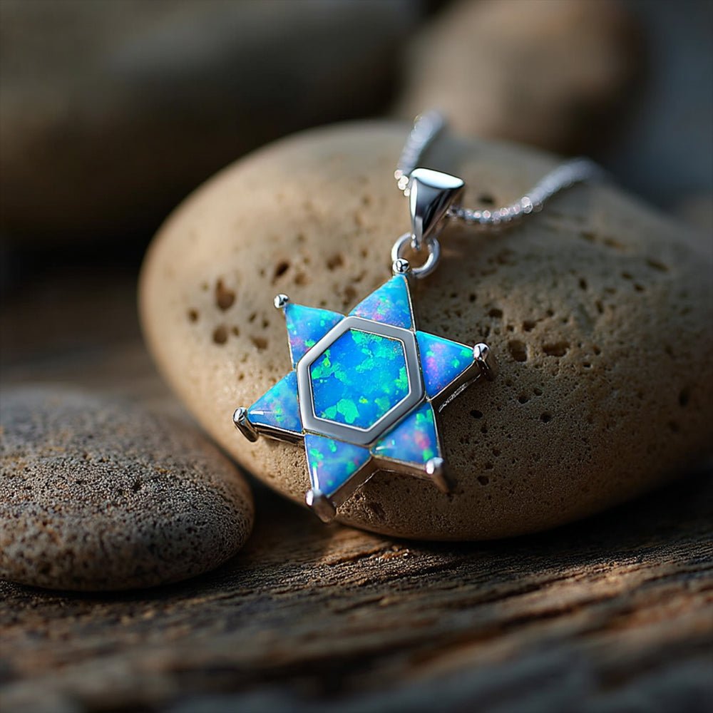 Honor your heritage and showcase your love for Israel with this elegant Opal Star of David Necklace. Featuring a radiant opal centerpiece, it glows with subtle strength, making it a beautiful symbol of faith, resilience, and your deep connection to the Jewish homeland.